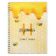 Fond jaune et blanc avec un motif en nid d'abeille. Décoré avec du miel doré sucré qui coule et des abeilles bourdonnantes heureuses. Modèles pour votre nom et initiale de monogramme, et un titre de livre.