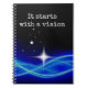 Ce bloc-notes dit "ça commence par une vision" dessus. Je crois que si vous avez d'abord une vision, alors vous pouvez aller après avoir fait de cette vision une réalité!