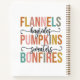 Ce design d'automne coloré et amusant présente une liste de favoris d'automne, dont "Flannels", "Hayrides", "Citrouilles", "Sweaters" et "Bonfires". Le texte est présenté dans une police majuscule et audacieuse, chaque mot étant rempli d'une teinte terreuse et chaleureuse différente, allant des roses douces aux oranges en passant par les verts et les bleus muets, qui capte parfaitement l'esprit cosy et vibrant de la saison. Les mots "hayrides" et "pull-overs" sont écrits dans un script fluide, ajoutant une touche d'élégance et créant un contraste agréable avec les caractères gras. Des fleurs décoratives encadrent le texte du script, ajoutant au charme et à l'attrait d'ensemble. Ce design est parfait pour l'automne.