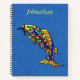 Ce carnet en spirale est d'une couleur bleue plus foncée avec une illustration de poisson abstrait festif et brillante avec des écailles colorées en bleu, rouge, jaune et orange. Customisez votre nom sur le devant avec le modèle.