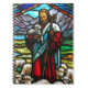 Belle image en vitrail de Jésus et agneaux de vitraux à St. Mary dans l'église catholique des Montagnes en Virginie, Nevada.