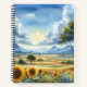 Ce carnet a deux aquarelles en un seul carnet. La face avant a une scène naturelle avec des tournesols. Le dos a un renne sur un rocher.