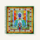 carnet en spirale personnalisé de 8,5 po x 8,5 po avec l'image d'un imaginaire en vitrail créé avec des vitraux rouges, orange, jaunes, verts, bleus, aqua et roses au design floral, parsemé d'orbes vertes lumineuses et d'orbes en cristal rouge profond. Le dos a une image de vitrail vert. Consultez la collection complète de ce Carnet et de ce qui se trouve dans la section OFFICE.
