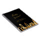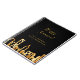 Carnet moderne et simple pour la location d'appartements de ville informations. Arrière - plan noir et ville abstraite skyline en faux or. Écriture manuscrite moderne et tendance et texte : Happy Summer! Modèle pour votre texte.