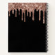 Ce carnet élégant et personnalisé présente un design glamour et girly sur un arrière - plan noir. Les paillettes de parties scintillant en or rose coulent sur la partie supérieure. Les initiales du monogramme sont placées sous la parties scintillant, suivies d'un exemple de nom imprimé dans une police de script élégante. L'arrière du carnet est muni d'un arrière - plan rose en or assorti avec des gouttes de parties scintillant.