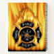 Logo du service d'incendie en or flamboyant. Idéal pour les pompiers et les premiers répondants.