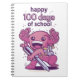 Joli design avec un axolotl portant un sac à dos et tenant un gros stylo avec la citation "Joyeux 100 jours d'école". Joyeux 100ème jour d'école ou de maternelle.