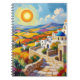A beautiful notebook featuring a vibrant Israeli landscape with white houses, blue rooftops, winding stone paths, and a glowing Middle Eastern sun. The design captures the warmth, peace, and inspiration of the Land of Israel – perfect for writing and creativity.