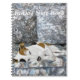 Ce carnet personnalisé comprend un Jack Russell Terrier, qui dort paisiblement sur un canapé bleu à fleurs. Le nom peut être changé.