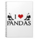 J'aime les ours de Panda. Ils sont si mignons et câlins, ils sont mon animal préféré. Deux mignons pandas mâchant du bambou à côté d'un coeur rouge sur ce joli cadeau.