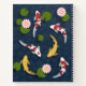 Belle illustration vectorielle minimaliste de koi japonais coloré nageant parmi les nénuphars dans un étang. Koi est une carpe de variété ornementale aux couleurs vives domestiquée au Japon.