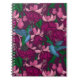 Motif vectoriel sans soudure avec fleurs fuchsia dessinées à la main et colibris