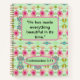 Jardin Eclectique Enchantant : Carnet de Beauté Florale Diverse Description : Présentant "Jardin Eclectique Enchantant : Carnet de Beauté Florale Diverse", un journal magnifiquement conçu, parfait pour vos pensées, notes et inspiration. La couverture présente un design floral époustouflant combiné à un verset biblique significatif, ce qui en fait un merveilleux compagnon pour les réflexions quotidiennes ou l'écriture créative. Design de couverture : Floral Motif : Le carnet présente un éventail complexe de fleurs diverses, créant une esthétique dynamique et accueillante qui reflète la beauté de la nature. Arrière - plan : Un arrière - plan vert apaisant améliore les éléments floraux, fournissant un cadre apaisant pour le texte. Éléments textuels : Verset biblique : En haut de la couverture, le verset "Il a rendu tout beau dans son temps." est centré, élégamment encadré d'une bordure d'encre qui ajoute une touche de sophistication. Référence : En bas, "Ecclesiastes 3:11" est affiché avec des attributs similaires, assurant une conception cohérente et équilibrée. Impression générale : Le carnet "Jardin Eclectique Enchantant" n’est pas seulement un élément pratique, c’est une belle expression de foi et de créativité. Idéal pour le journalisme, la prise de notes, ou comme un cadeau réfléchi pour les amis et les proches, ce carnet encourage la réflexion et l'inspiration. Imaginez ouvrir ce carnet enchanteur, où la beauté de la nature rencontre des mots puissants de sagesse, vous inspirant avec chaque page ! Découvrez la gamme complète des produits disponibles dans notre collection Achempong Zazzle et trouvez le carnet parfait pour vos besoins. Vous aimez ce design ? Partagez-le avec vos amis et votre famille !