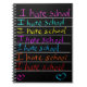 "Je déteste l'école" Neon écrit sur la page du carnet noir.