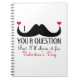 Moustache noire amusante avec les coeurs rouges et le texte Je vous pose une question mais je vais la raser pour la Saint-Valentin. Vous pouvez customiser la couleur du carnet blanc.