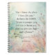 Cette aquarelle présente des plantes délicates dans des tons doux de bleu, vert et corail, créant une atmosphère sereine et rêveuse. Le doux mélange des couleurs évoque un sentiment de tranquillité et d'harmonie. Le verset inspirant de la Bible, Jérémie 29:11, est au centre de cette composition, élégamment exposée, nous rappelant l'espérance et le dessein divin. L'ensemble est stimulant et apaisant, ce qui en fait un complément parfait à tout espace qui a besoin d'encouragement et de sérénité. Cette oeuvre capture l'essence de la nature et de la foi d'une manière visuellement étonnante.