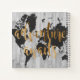 Un design mignon avec une phrase en or et une carte noire du monde sur un arrière - plan en plâtre gris. Artiste : Studio W