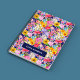 Carnet Joli bleu jaune élégant motif floral monogramme