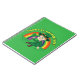 Carnet avec l'illustration d'un joli leprechaun souriant portant un costume vert, un chapeau haut en tenant une feuille de shamrock, avec un arc-en-ciel coloré dans l'arrière - plan et un texte disant "Bonne Saint Patrick" Un design parfait pour célébrer la Saint Patrick, dessiné par Radka2D