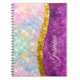 Rendez la rentrée amusante avec ce joli cahier personnalisé. Il est conçu avec un élégant scintillement iridescent girly en couleurs arc-en-ciel de licorne rose fuchsia et or.