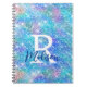 Carnet Joli monogramme iridescent licorne bleu rose paill