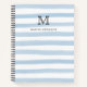 Joli cahier de nom monogramme rayures aquarelle bleu poussiéreux