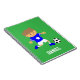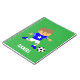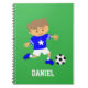 Ce mignon bloc-notes est parfait pour les garçons qui aiment le football ou les joueurs de football! Il est livré avec un garçon mignon dans un maillot de football bleu tendance avec étoiles, bandes blanches sur les manches, shorts blancs et bottes de football bleu assorties avec des clous se préparant à donner un coup de pied à un ballon de football pour le but! Personnalisez avec le nom de l'enfant.