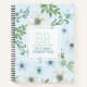 Joli bleu, vert et blanc aquarelle design floral avec vos initiales et nom personnalisé sur la couverture.