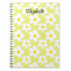 Un joli carnet girly avec des marguerites rétro blanches sur un arrière - plan jaune qui fera prendre note, journalisation, ou simplement vérifier votre liste de choses à faire un plaisir. Grand comme un petit luxe pour un usage quotidien et assez petit pour transporter avec vous. Customisez le texte de la couverture pour ajouter votre nom ou une autre phrase à l'aide de l'outil d'édition de la liste. Acheter des carnets spiraux personnalisés en ligne à partir de Zazzle est la meilleure façon d'obtenir des carnets personnalisés avec des noms, des photos, des logos d'entreprise, ou des dessins que vous faites vous-même ou choisir parmi nos modèles pour vous lancer. Vous pouvez obtenir des carnets personnalisés en spirale en vrac sans minimums. Idéal pour les adultes ou pour l'école ou le voyage. Disponibles en 5x8 ou grandes tailles, ils sont pratiques pour un usage personnel ou un échange commercial promotionnel.