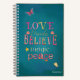 Un cadeau pour elle. Joli journal rose et couleurs vives. Un cadeau parfait pour garder un souvenir. Avec des mots typographiques peints à la main "amour, miracles, croire, magie, paix" avec des papillons colorés, fleurs et étoile. Facile à personnaliser le nom sur le capot avant. Sur un arrière - plan peint en bleu vert avec des détails d'amour et de papillon sur le dos.
