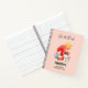 Livre d'or - carnet en spirale avec une adorable image représentant une vache souriante, avec un ballon en or et un peu de gâteau et un cadeau.