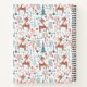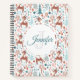Carnet spiral avec un adorable motif de Noël. Joli cerf d'hiver avec des bois qui défilent autour d'une forêt d'arbres et d'herbes. Un cercle blanc superposé avec votre nom et votre monogramme initial à l'intérieur.