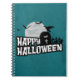 Happy Halloween dessin de texte avec le cimetière et la décoration de chauves-souris à pleine lune sur grunge bleu arrière - plan