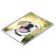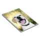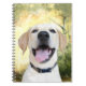 Jeune récupérateur de labrador jaune avec un grand sourire joyeux et moche sur son carnet en photo face bordée. Grand cadeau pour les amoureux de les chiens