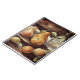 This is a simple watercolor design of still life, with pears, oranges and a few leaves, it's a lovely peaceful scene.