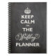 Fully customizable to any color - 'Keep Calm I'm The Wedding Planner' funny and popular internet meme quote in white romantic curly calligraphy script and typography on a retro black chalkboard image background (removeable). A modern and trendy notebook design for organizing wedding rehearsal / wedding party / bridal party / bachelorette party / wedding party and events.