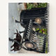 Kitty dans le parc le long du banc de fer et de la canette de déchets. Chat Noir. Fer forgé noir et chat noir. Par frontiernow.com