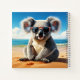 Koala assise sur une plage de sable en lunettes de soleil. Ce koala furry est originaire d'Australie, ils sont facilement reconnaissables par leur corps stout, sans queue et grande tête avec des oreilles rondes et moelleuses et un nez gros en forme de cuillère.