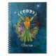 Belle aquarelle illustrée carnet caractéristiques de la déesse de lune en robe vert émeraude avec cheveux rouge flamboyant sur le ciel céleste arrière - plan. Personnalisable avec texte de script en blanc