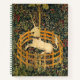 Carnet avec la tapisserie médiévale La licorne en captivité (1495-1505). La septième tapisserie de The Unicorn Tapestries, également connue sous le nom de The Unicorn Rests in a Garden, montre une licorne blanche avec un collier bleu assis à l'intérieur d'une clôture. L'herbe verte et de belles fleurs entourent la licorne. Un cadeau fantastique pour les collectionneurs d'art médiéval et les amateurs d'imaginaires !