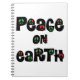 Graphique à thème de Noël mignon et significatif avec des signes de paix rouge et vert accentué dans chaque lettre. Wishing Peace on Earth... à Noël et tous les jours.