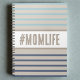 Cahier en bleu turquoise, beige et blanc. Dessin de citation personnalisé hashtag "#momlife" dans des couleurs de plage. Le cadeau idéal pour votre maman pour son anniversaire ou la fête des mères.