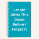 Carnet Laissez-Moi Écrire Ceci Avant Que Je Ne L'Oublie