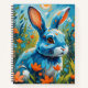 Un joli lapin bleu est posé parmi les fleurs sur ce charmant carnet de rentrée pour enfant.
