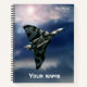 Ce carnet présente une photo de la bombe stratégique Avro Vulcan Delta Wing volant contre un ciel très lumineux. La bombe est ouverte. Vous pouvez le personnaliser avec votre nom.