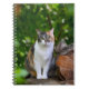 Un chat s'installe dans le jardin verdoyant, à côté d'une rondelle et regarde devant