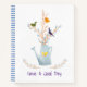 Ce design fantaisiste est composé d'un trio d'amis à plumes, d'un paon violet, d'un canard vert et d'un poussin jaune. Le texte, en bas, peut être customisé. Ces carnets polyvalents sont disponibles en trois styles et sont offerts avec un choix de six couleurs spirales. Optez pour une conception personnelle encore plus poussée en choisissant l'une des huit options de conception de pages, dont College Ruled, Graph et Recipe. L'exemple de photo montre les pages du Collège gouverné.