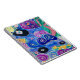 Un kaléidoscope de couleurs forme des motifs tourbillonnants et des motifs floraux, créant une tapisserie visuelle animée. L'utilisation de bleus, de violets et de verts audacieux se combine avec des roses et des jaunes frappants pour évoquer une sensation complexe et capricieuse. La complexité et les couleurs vives des oeuvres d'art suggèrent un design ludique mais sophistiqué.