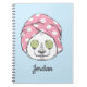 Panda mignon dans une serviette avec des concombres sur ses yeux.