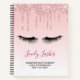 Carnet Spiral au design moderne et tendance. Pour ceux qui souhaitent transmettre un air de classe et d'élégance. Conçu avec un arrière - plan qui a une image de gouttes de parties scintillant rose et pétillante. Le reste de l'arrière - plan est un délicat dégradé de couleur rose pastel. Une illustration d'une paire de cils noirs complète le design.